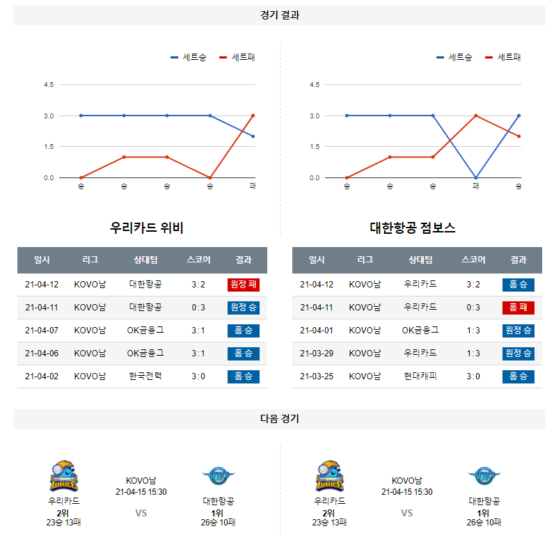4월 14일 우리카드 대한항공 분석 V-리그 남자 배구