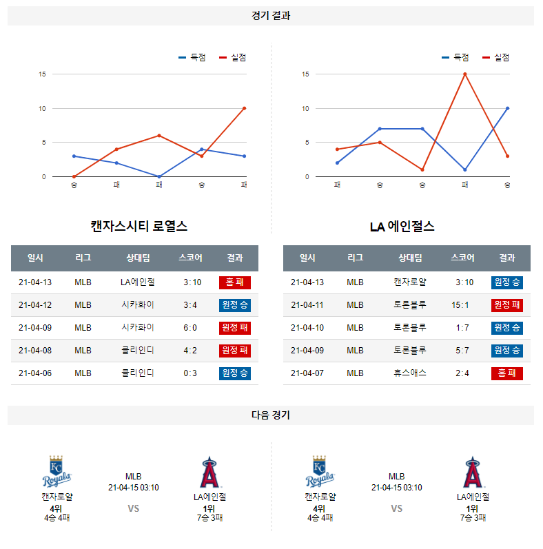 4월 14일 캔자스시티 LA에인절스 분석 MLB 미국 프로야구