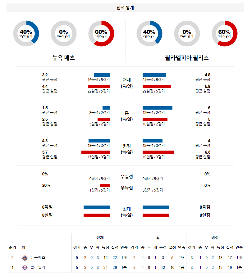 4월 14일 뉴욕메츠 필라델피아 분석 MLB 미국 프로야구