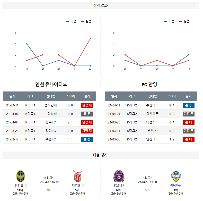 4월 14일 인천유나이티드 FC안양 분석 대한민국 FA컵 축구