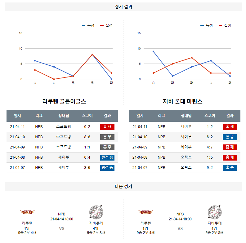 4월 13일 라쿠텐 지바롯데 분석 NPB 일본 프로야구