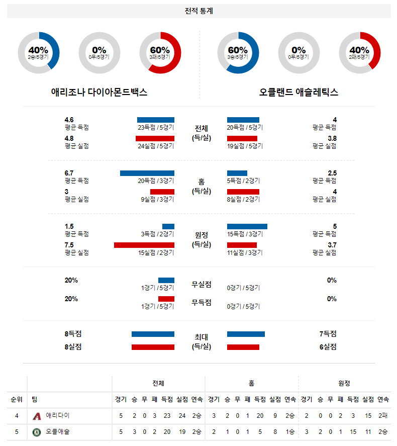 4월 13일 애리조나 오클랜드 분석 MLB 미국 프로야구
