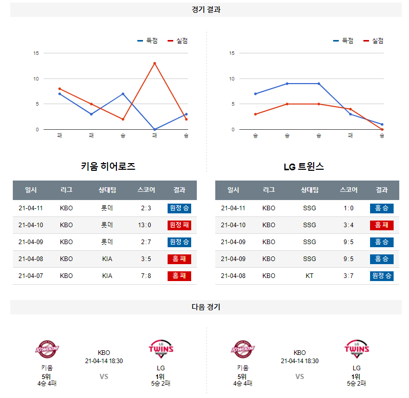 4월 13일 키움 LG 분석 KBO 한국 프로야구