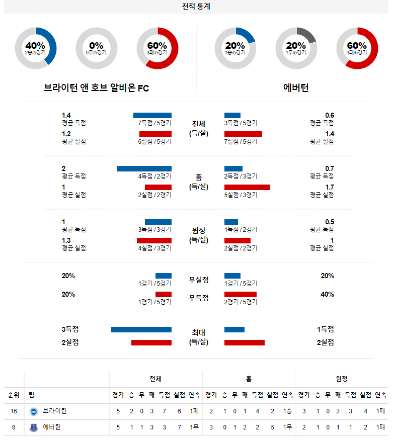 1. 최근 5경기 맞대결 : 5전 2승 0무 3패 (에버튼 우세)