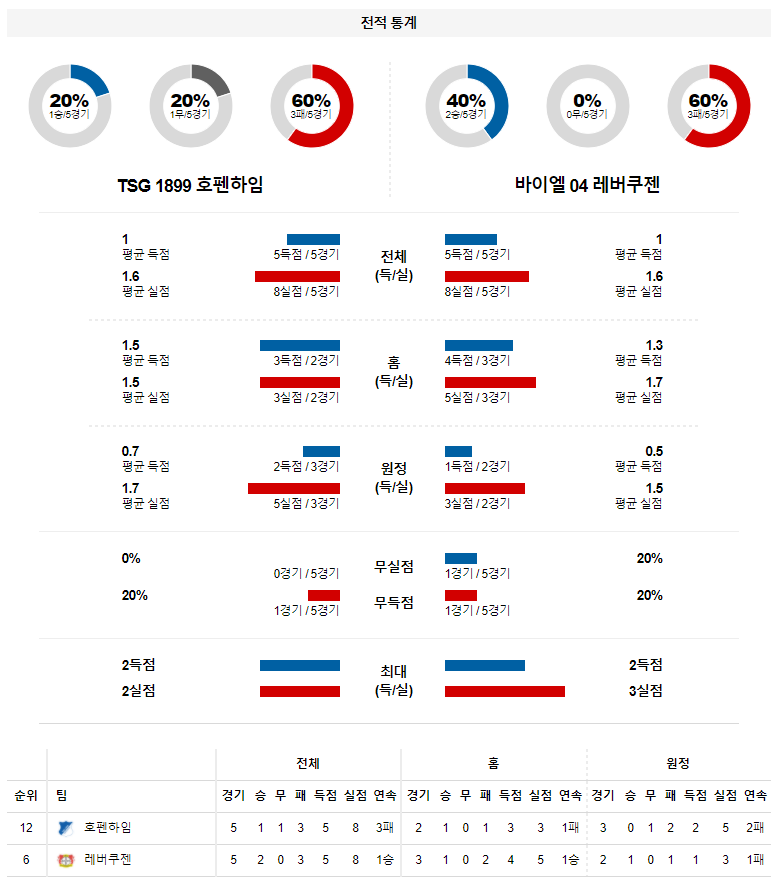 1. 최근 5경기 맞대결 : 5전 3승 1무 1패 (호펜하임 우세)