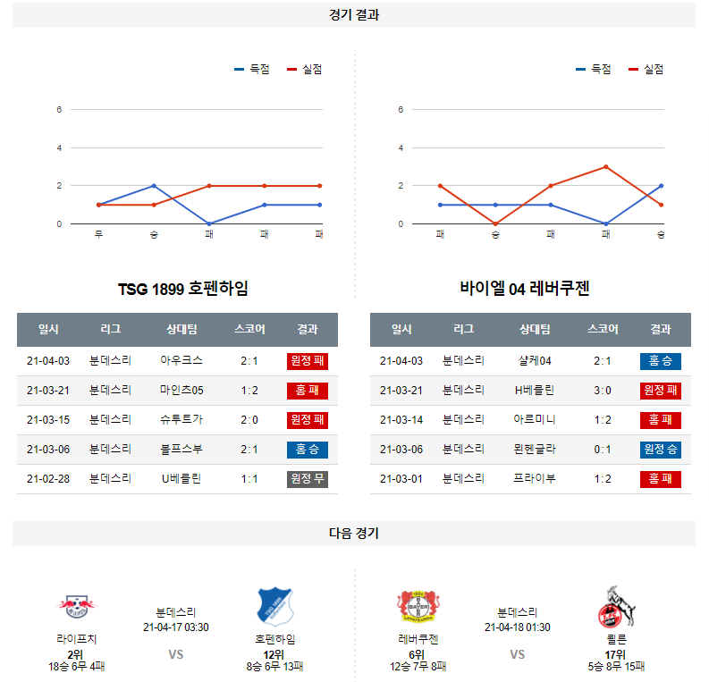 4월 13일 호펜하임 레버쿠젠 분석 분데스리가 축구