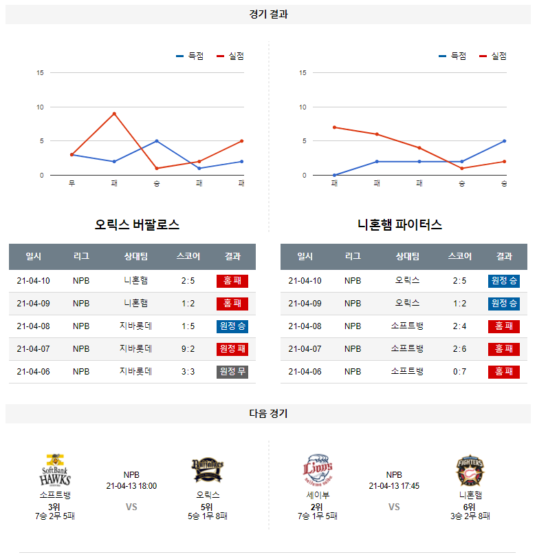 4월 11일 오릭스 니혼햄 분석 NPB 일본 프로야구