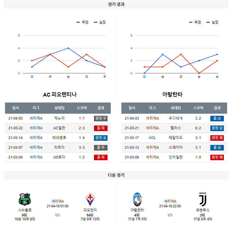 4월 12일 피오렌티나 아탈란타 분석 세리에A 축구