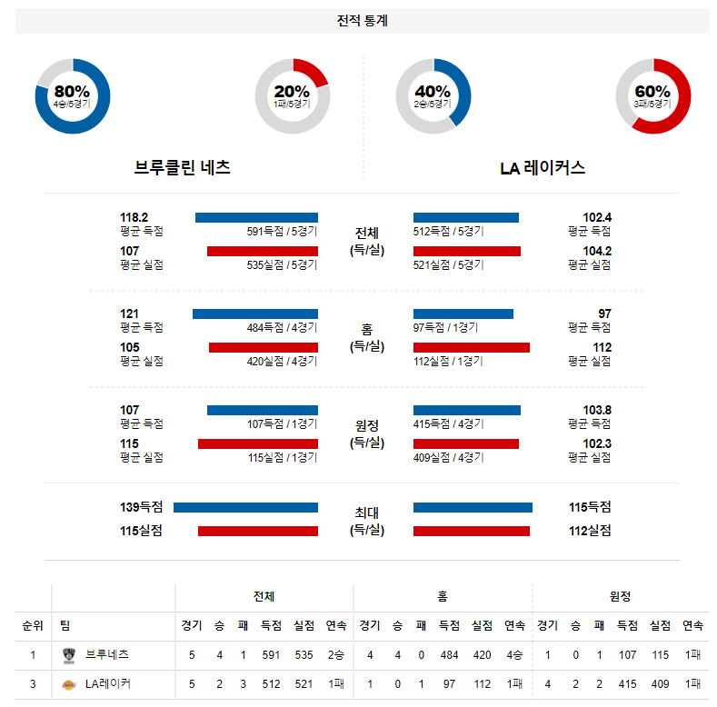 1차전 에서는 브루클린은 직전경기(2/19) 원정에서 LA레이커스 상대로 109-98 승리를 기록했다. 2차전에서도 브루클린이 승리를 놓치지는 않겠지만 안드레 드러먼드에 대한 수비가 쉽지 않을 것으로 예상되며 수비 조직력이 나쁘지 않은 LA레이커스 라는 것을 감안한다면 부담이 되는 핸디캡 범위라고 생각 된다.