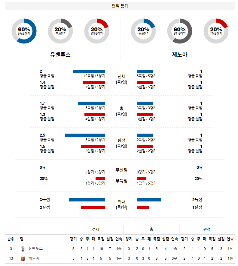 2. 유벤투스 이번 시즌 홈 성적 : 15전 11승 2무 2패 (무실점 비율 : 40%, 무득점 비율 : 13%)