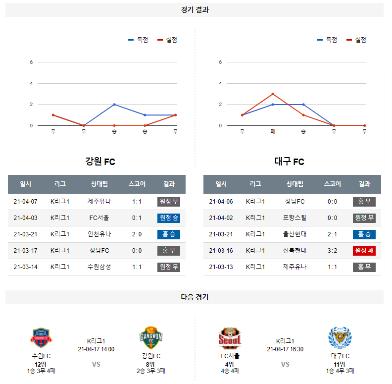 4월 10일 강원FC 대구FC 분석 K리그 축구