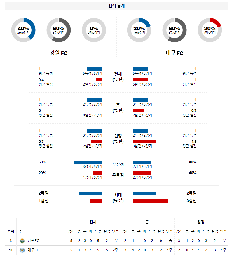1. 최근 5경기 맞대결 : 5전 0승 2무 3패 (대구 우세)