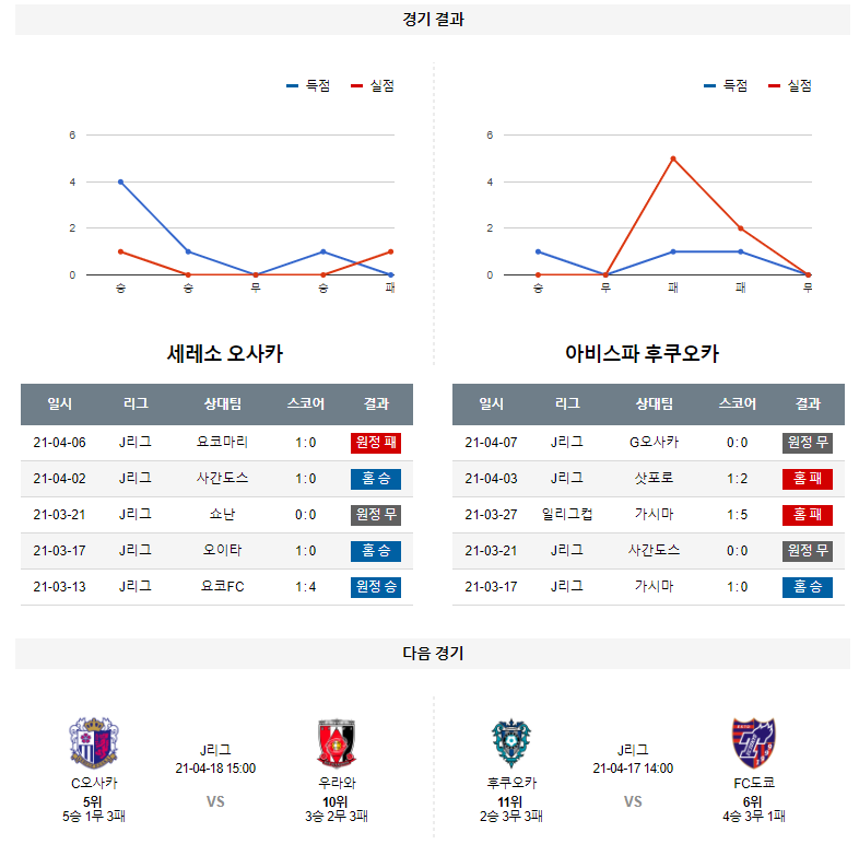 1. 최근 6경기 맞대결 : 6전 2승 2무 2패 11득점 4실점 (세레소 우세)