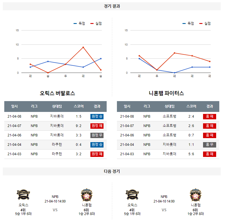 4월 9일 오릭스 니혼햄 분석 NPB 일본 프로야구