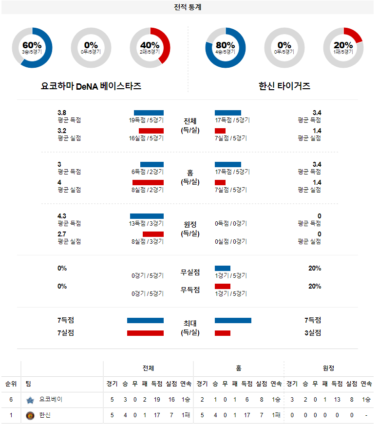 주니치와 3연전에서 위닝 시리즈를 거둔 요코하마는 하마구치 하루히로를 앞세워 기세를 이어가려 한다. 하마구치는 지난 히로시마 전에서 6이닝 7피안타 1피홈런 2사사구 4탈삼진 2실점을 기록하며 퀄리티 스타트 달성에 성공했다. 하지만 올 시즌 2경기에서 1패 ERA 7.00을 기록하며 완전히 무너지고 있는 만큼 이번 경기에서도 무너질 가능성이 높다. 게다가 직전 경기에서 이세 히로무가 1실점을 내줬다는 점도 불안한 부분이다.