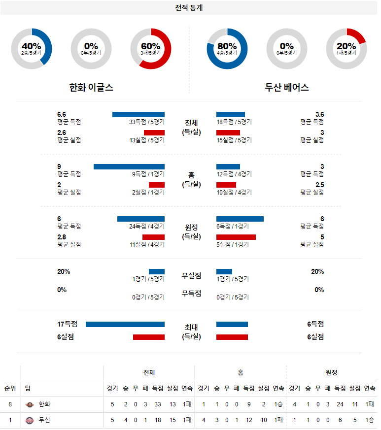 4월 9일 한화 두산 분석 KBO 한국 프로야구