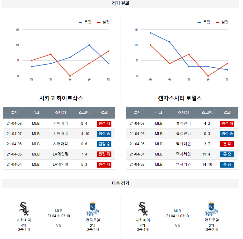4월 9일 시카고화이트삭스 캔자스시티 분석 MLB 미국 프로야구