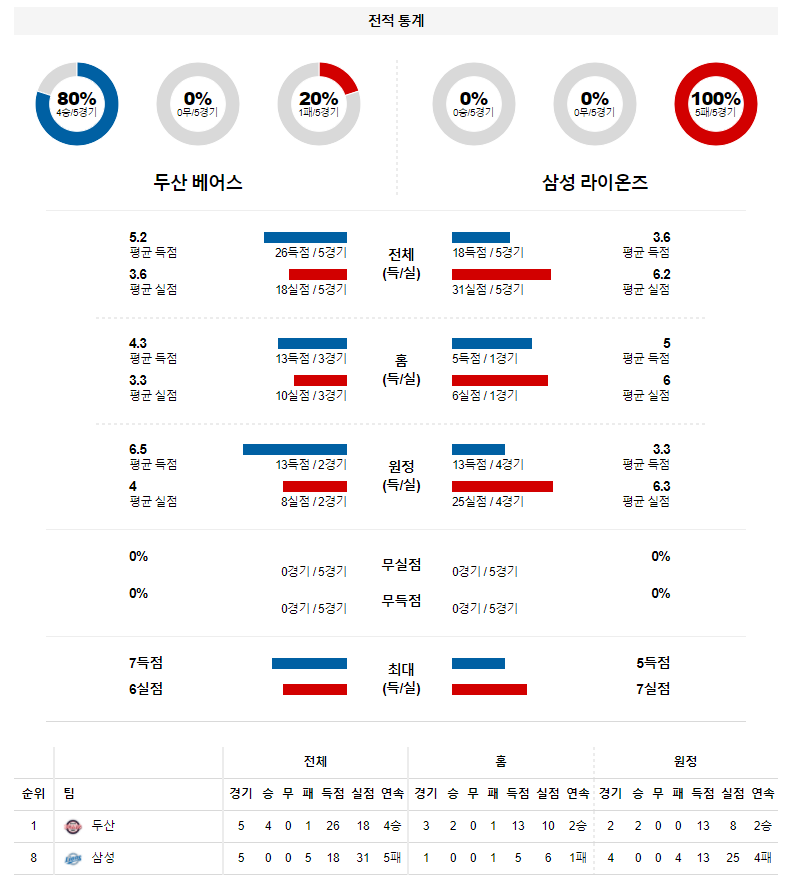 4월 7일 두산 삼성 분석 KBO 한국 프로야구