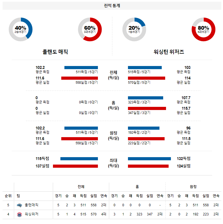 올시즌 상대전 1차전(원정) 10점, 2차전(원정) 7점차 승리를 기록한 올랜도 이지만 상대전 승리의 주역이 되었던 니콜라 부세비치, 에반 포니에가 이제는 팀을 떠난 올랜도 이다. 러셀 웨스트브룩의 빠른 드리블 돌파에 이은 림을 직접 공략하는 돌파 옵션이 위력을 발휘할 것이다. 워싱턴 승리 가능성을 추천 한다.