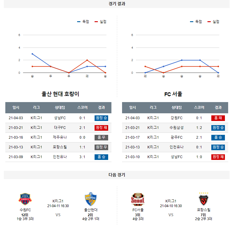 4월 7일 울산현대 FC서울 분석 K리그 축구