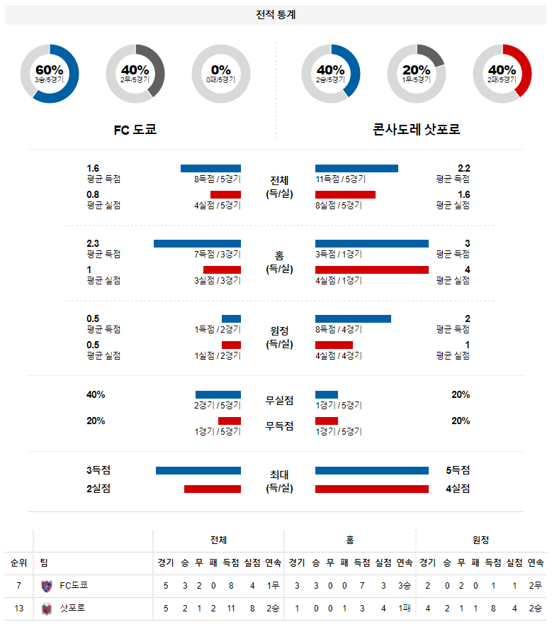 2. 도쿄 이번 시즌 홈 성적 : 4전 3승 1패 (무실점 비율 : 0%, 무득점 비율 : 0%)