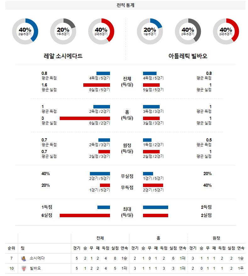 1. 최근 5경기 맞대결 : 5전 4승 0무 1패 (레알 소시에다드 우세)