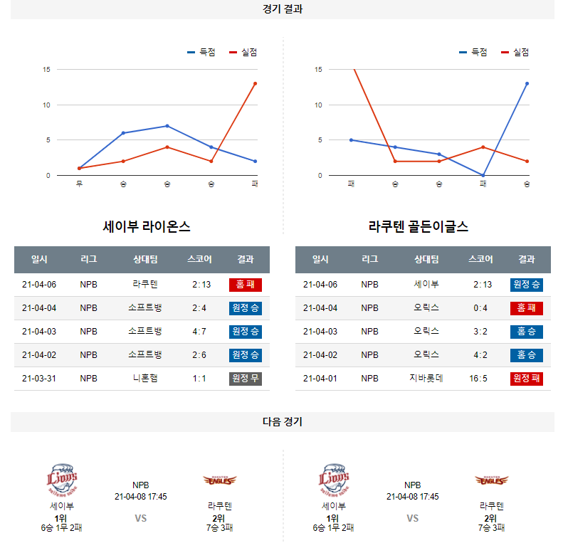 4월 7일 세이부 라쿠텐 분석 NPB 일본 프로야구