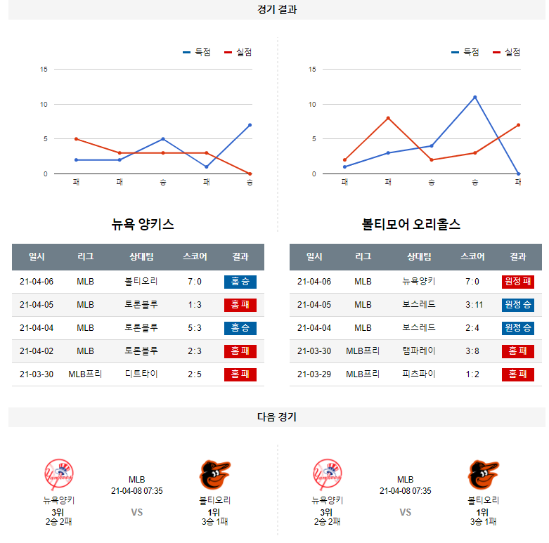 4월 7일 뉴욕양키스 볼티모어 분석 MLB 미국 프로야구