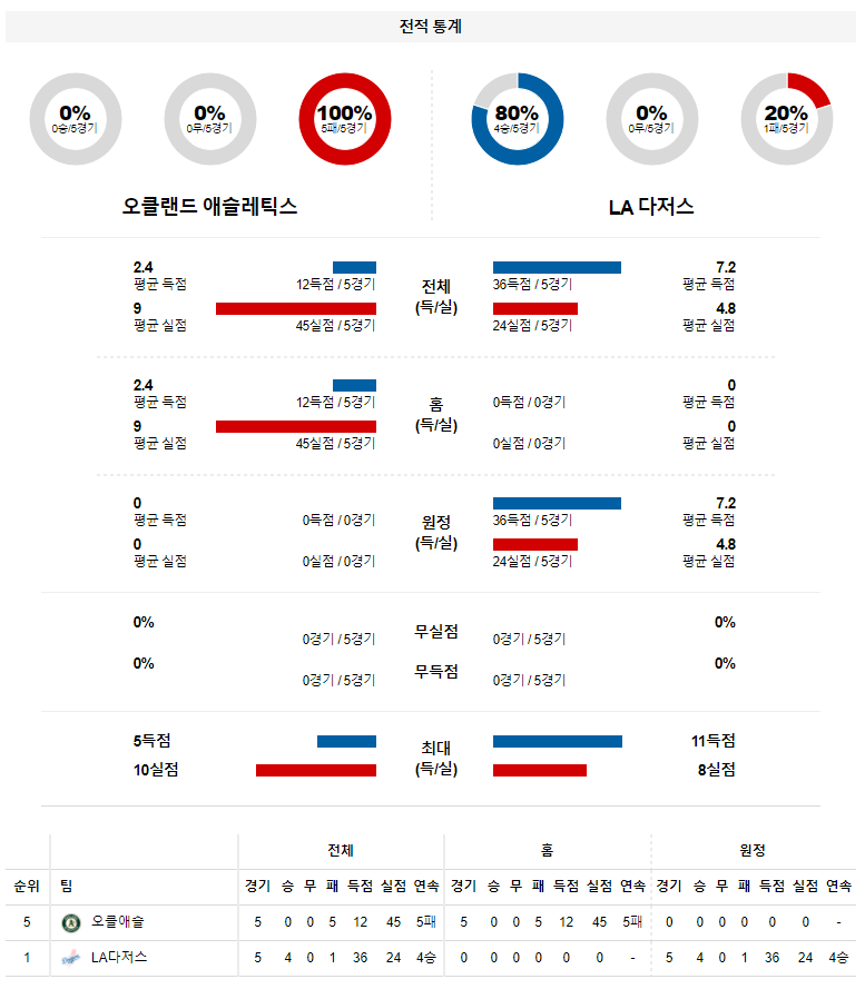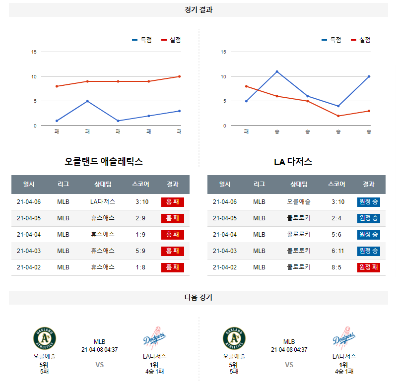 4월 7일 오클랜드 LA다저스 분석 MLB 미국 프로야구