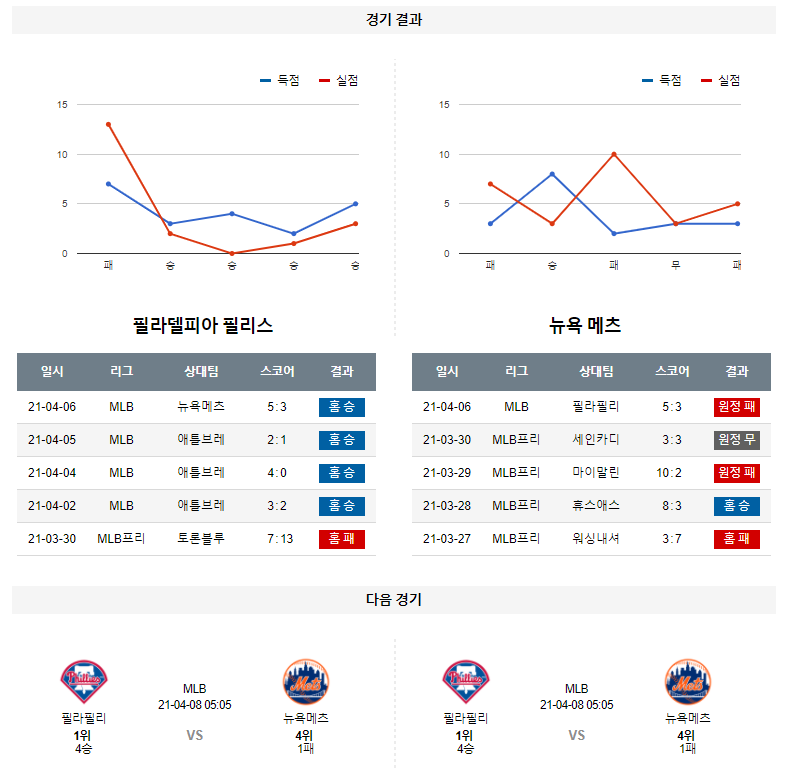 4월 7일 필라델피아 뉴욕메츠 분석 MLB 미국 프로야구
