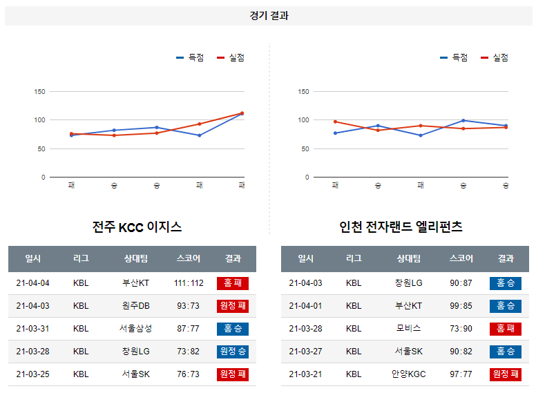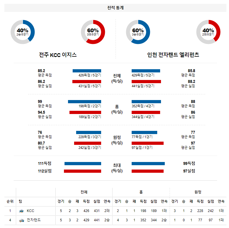 4월 6일 KCC 전자랜드 분석 KBL 농구