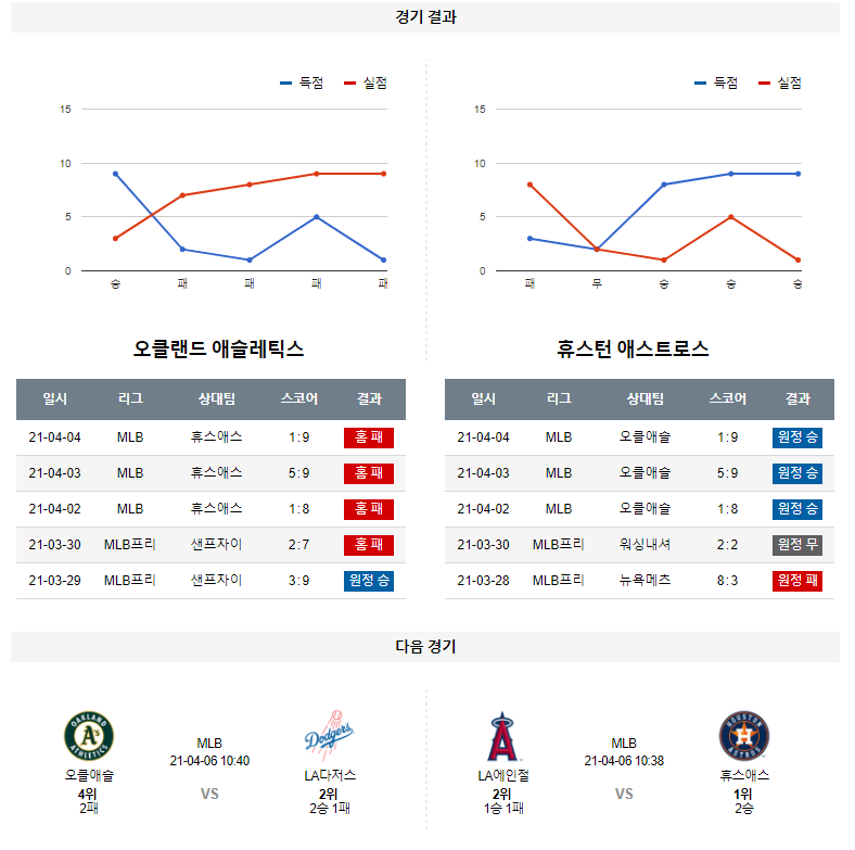 4월 5일 오클랜드 휴스턴 분석 MLB 미국 프로야구