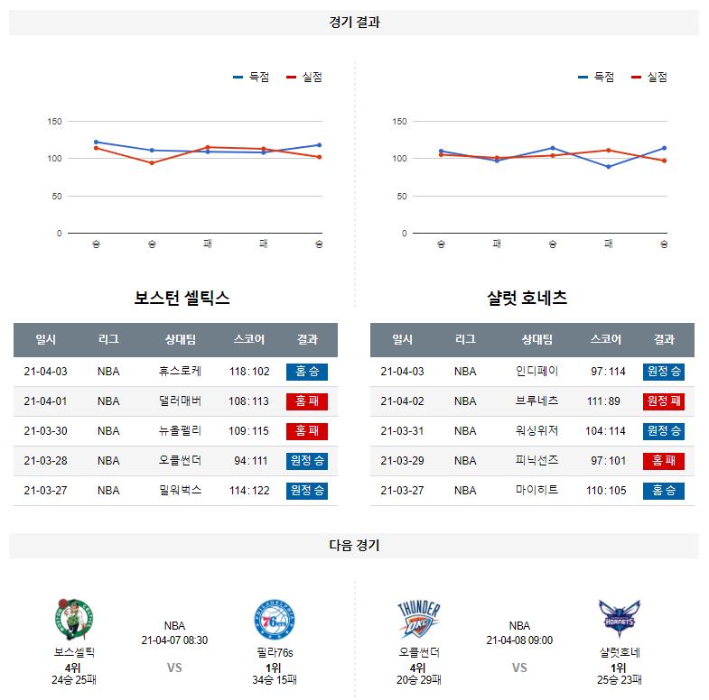 4월 5일 보스턴 샬럿 분석 NBA 농구