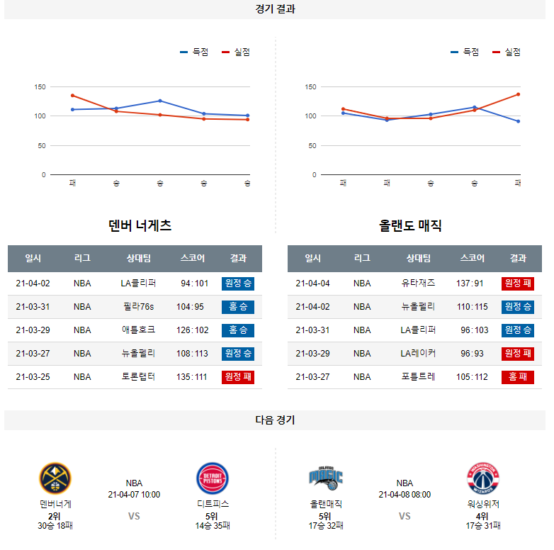 4월 5일 덴버 올랜도 분석 NBA 농구