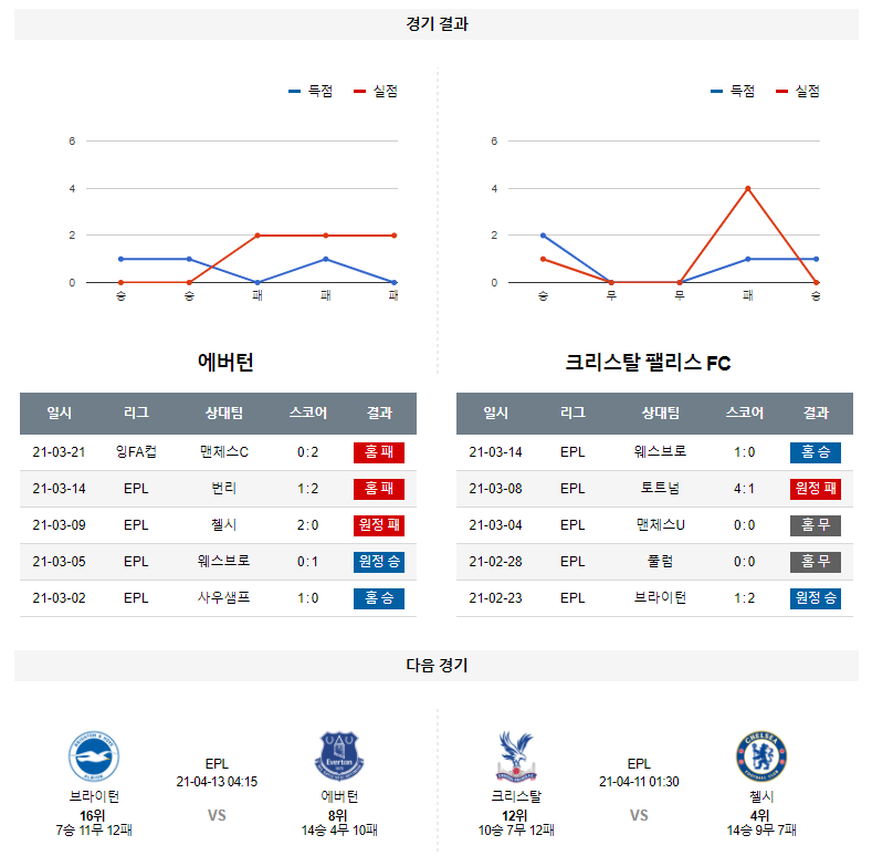 4월 6일 에버턴 크리스탈 분석 프리미어리그 축구