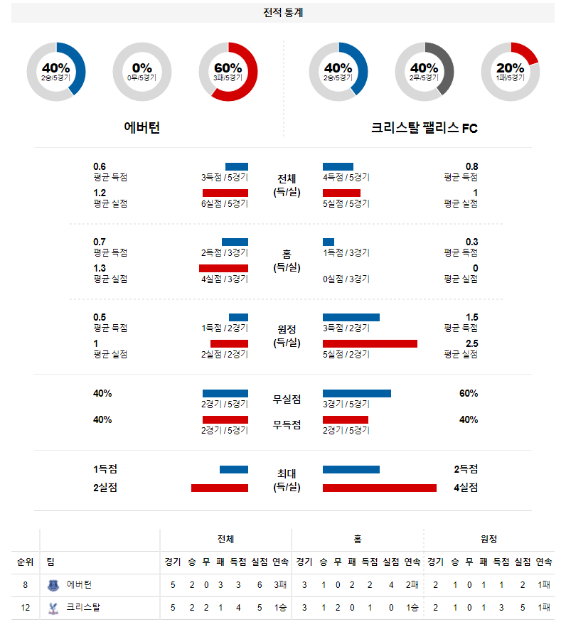 1. 최근 5경기 맞대결 : 5전 3승 2무 0패 (에버튼 우세)