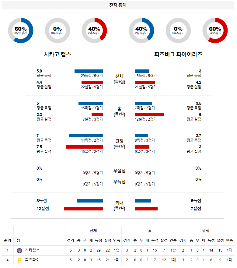 4월 5일 시카고컵스 피츠버그 분석 MLB 미국 프로야구