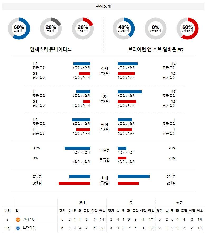 1. 최근 5경기 맞대결 : 5전 5승 0무 0패 (맨유 우세)