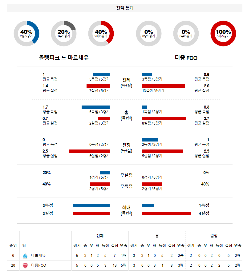 1. 최근 6경기 맞대결 : 6전 4승 2무 10득점 2실점 (마르세유 우세)