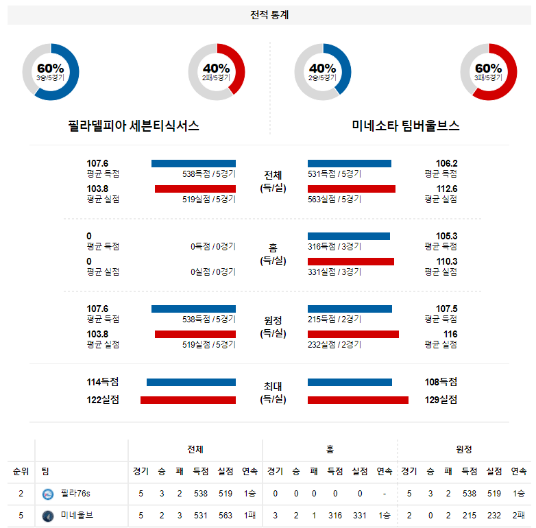 4월 4일 필라델피아 미네소타 분석 NBA 농구