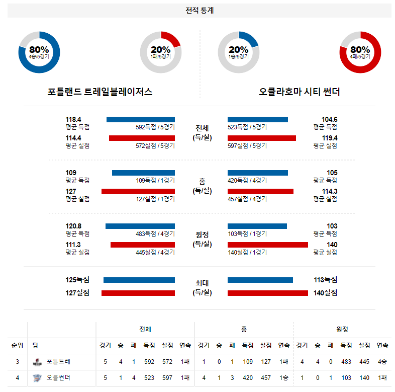 4월 4일 포틀랜드 오클라호마 분석 NBA 농구
