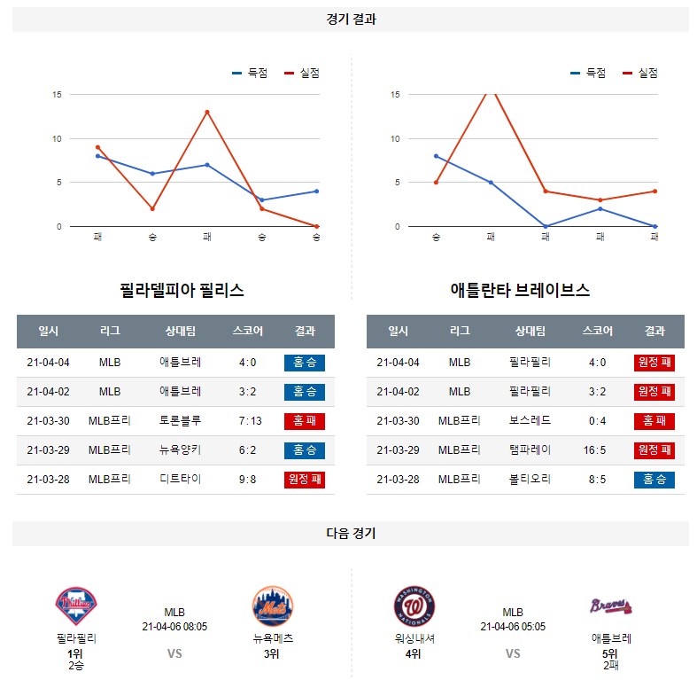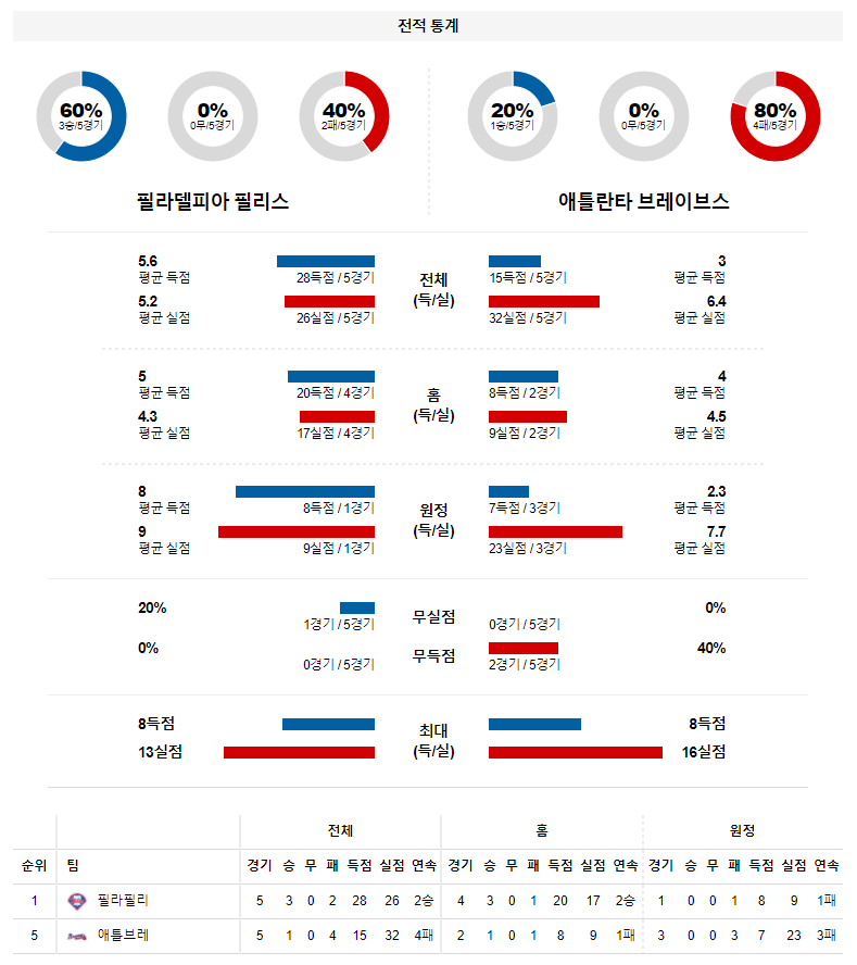 4월 5일 필라델피아 애틀란타 분석 MLB 미국 프로야구