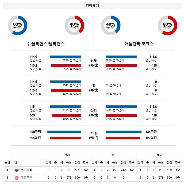 4월 3일 뉴올리언스 애틀란타 분석 NBA 농구