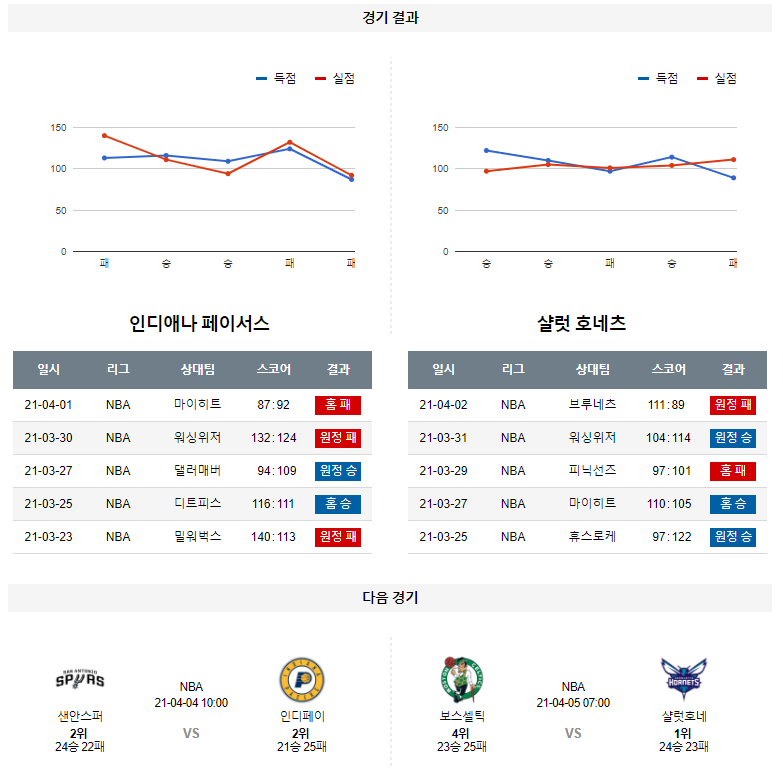 4월 3일 인디애나 샬럿 분석 NBA 농구