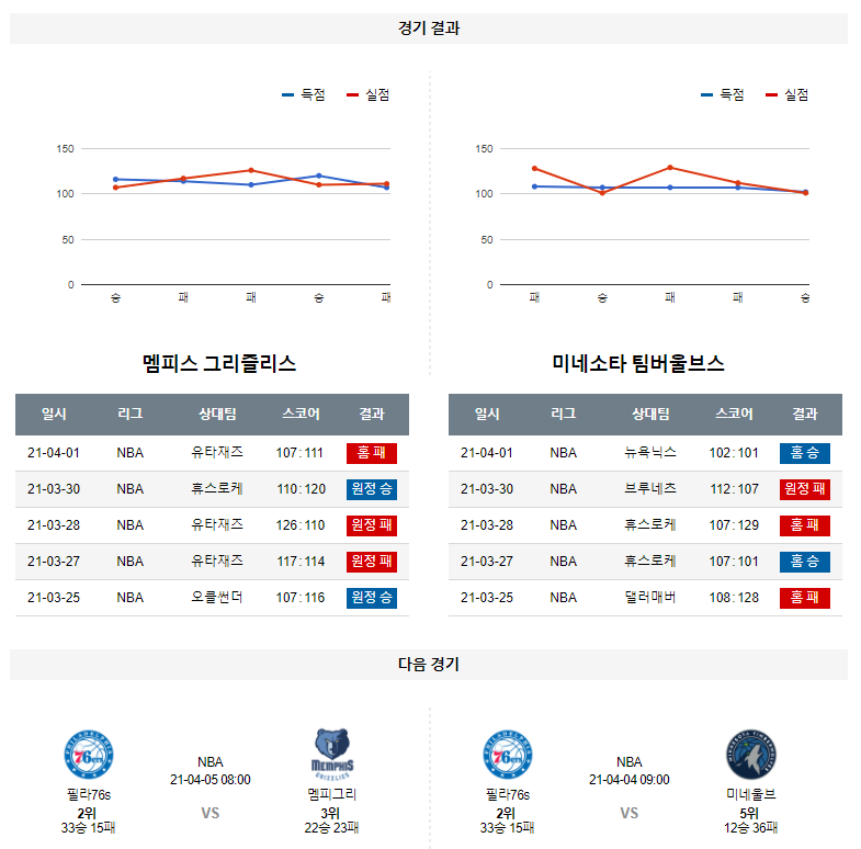 4월 3일 멤피스 미네소타 분석 NBA 농구