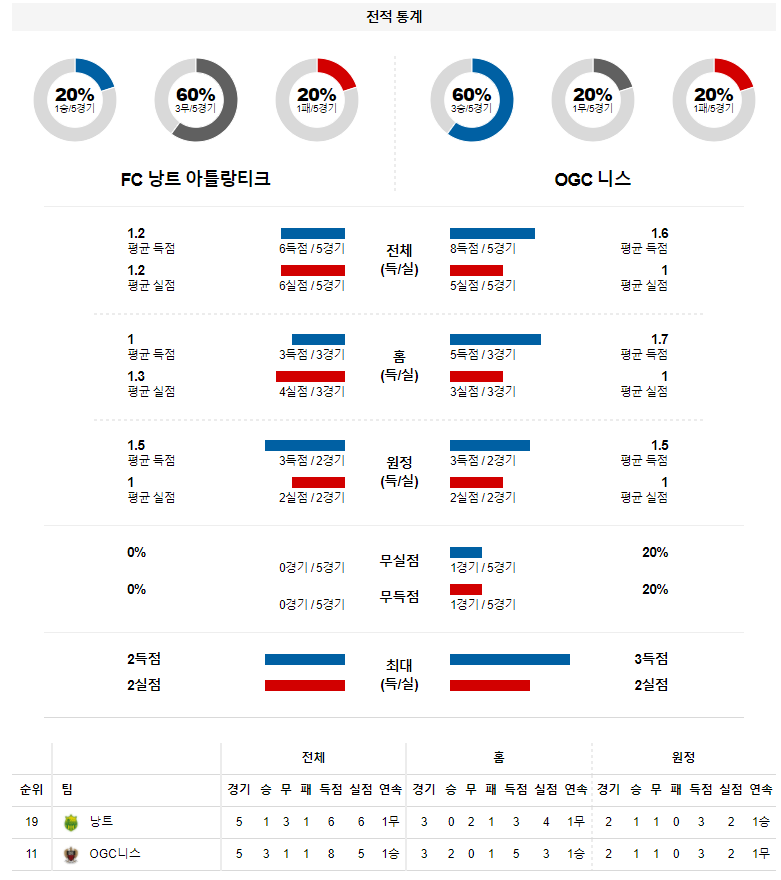 1. 최근 6경기 맞대결 : 6전 3승 2무 1패 8득점 6실점 (니스 우세)