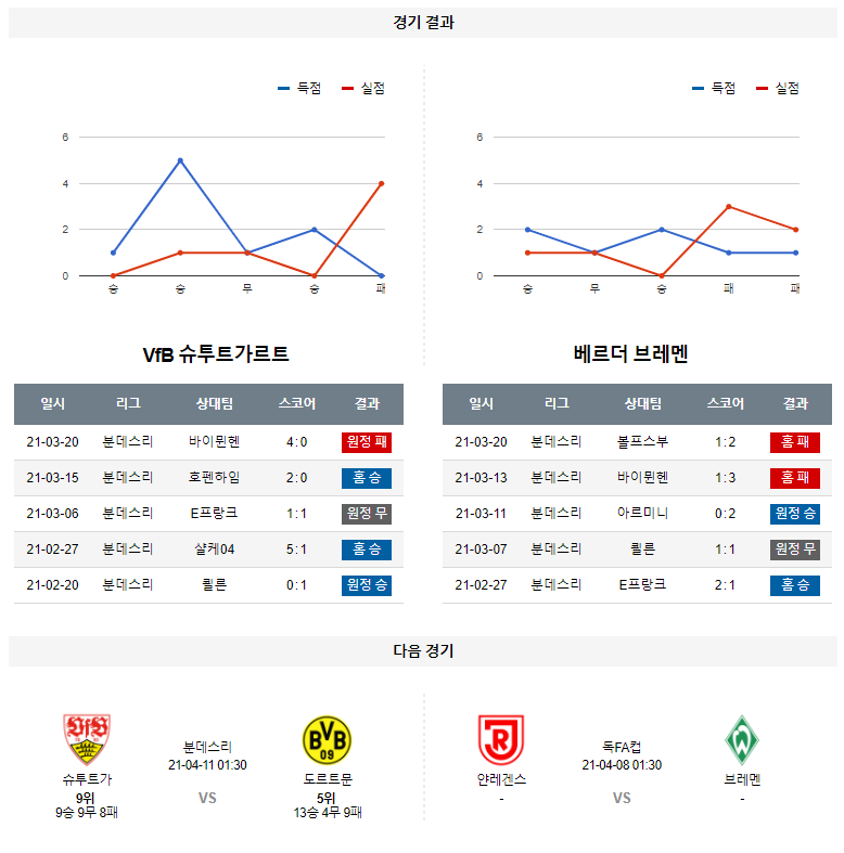 4월 4일 슈투트가르트 브레멘 분석 분데스리가 축구