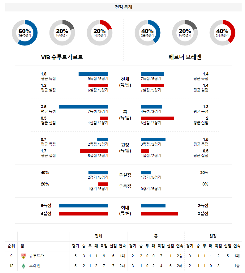 1. 최근 5경기 맞대결 : 5전 3승 1무 1패 (슈투트가르트 승)