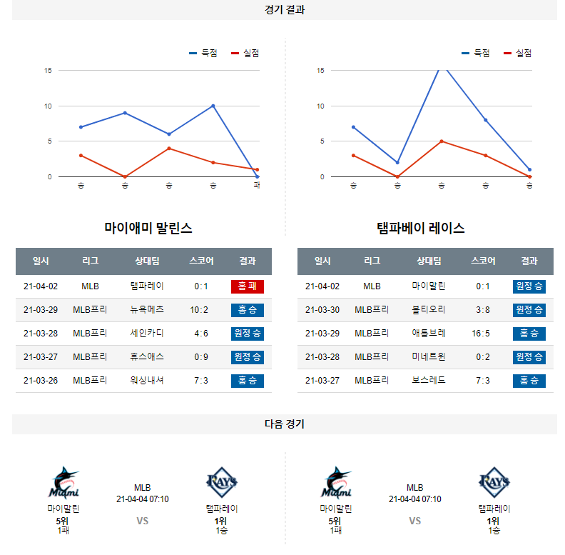 4월 3일 마이애미 탬파베이 분석 MLB 미국 프로야구