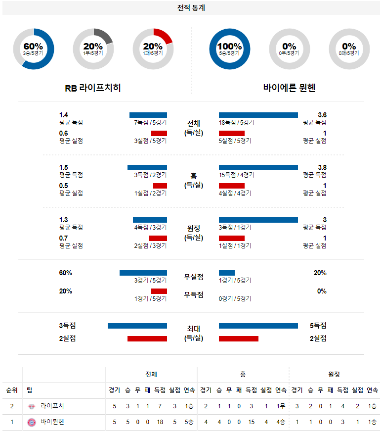 1. 최근 5경기 맞대결 : 5전 0승 4무 1패 (바이에른 뮌헨 우세)